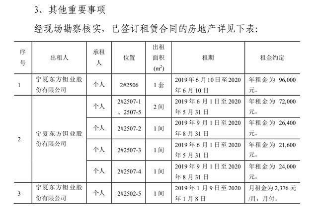 对于拟出售房屋仍在租期内的情况,东方钽业表示,若公司挂牌交易成功,合同双方将按合同约定,按照协商方式提前解除租赁合同。 东方钽业在对深交所的回复内披露了相关租赁合同的部分条款:根据双方签订的租赁合同第九条(一) 经甲乙双方协商一致,可以解除本合同;第十条(二):租赁期内,甲方需提前收回该房屋的,或乙方需提前退租的,应提前30日通知对方,并按月租金的100%支付违约金,甲方还应退还相应的租金。 02 房产源自债权转让 东方钽业名下这11套房产,源自于2004年的一次债权转让。 2004年4月,东方钽业利用自有资金3000万元委托西北证券进行为期一年的国债投资,年收益率为6%。协议到期后,西北证券除向东方钽业支付了90万元的投资收益外,未向公司支付约定的剩余投资收益90万元及本金3000万元。 2005年6月30日,东方钽业三届二次监事会会议审议通过了《关于转让公司委托投资国债债权的议案》,债权的转让方为东方钽业第一大股东,即持股东方钽业58.18%股权的宁夏有色金属冶炼厂(下称“宁治厂”,即东方钽业现控股股东中色(宁夏)东方集团有限公司的前身)。东方钽业表示,为保护投资者的根本利益,有利于东方钽业的持续发展,特进行此项关联交易。 根据东方钽业同宁冶厂签订的《债权转让协议》,在协议生效后的十二个月内,宁治厂按季均衡原则,支付给东方钽业转让价格3000万元。支付方式为现金、设备、房屋、原材料、物资、土地使用权等,现金方式不低于总价格的50%。 宁治厂选择用房产加现金的方式履行协议。2005年12月,西北证券抵账给新债权方宁治厂22套房地产。2006年6月,宁冶厂将其所取得的18套房产以总价人民币2808.82万元的价格出售给东方钽业。根据东方钽业2006年年报,上述房产的产权已于2006年正式过户到东方钽业名下。 值得注意的是,据东方钽业披露,宁冶厂为取得西北证券用来抵债的上述房产,共支付了现金1317.94万元;由于宁治厂于2005年12月31日前支付给东方钽业现金515万元,按多退少补原则,东方钽业后返还宁冶厂现金323.82万元。至此,为偿付东方钽业3000万元债权,宁冶厂共支付现金1509.12万元,现金支付比例超过50%,符合双方所签协议的要求。 但千鹤家园房产的故事还未结束。实际上,这并不是东方钽业第一次尝试转让名下房产。 2018年10月,东方钽业曾尝试出售公司在北京、银川两地的共5处房产,其中也包括此次出售的千鹤家园2、3号楼共三套房产。发布转让公告后,东方钽业未再披露上述转让的后续进展。日前,东方钽业证券部向AI财经社表示,上述5处房产均未成功出售。 东方钽业并未在2018年10月、2019年12月的两则公告内说明房产购入日期。仅以连续出现在2018年、2019年转让名单里的千鹤家园三套房产为例,上述房产的账面价值原值分别为130.85万元、130.85万元和211.44万元,增值率小计为609.55%。不过,自2018年至2019年,上述三套房产的净值分别下降4.14万元、4.14万元和6.69万元。