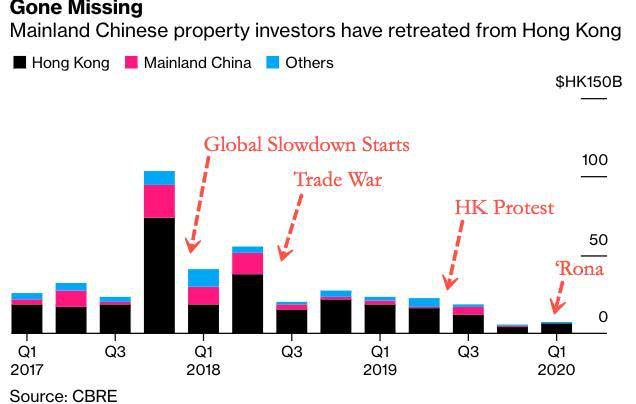 周一公布的初步数据显示,香港经济第一季度出现了崩溃,较上年同期下滑8.9%,为有史以来最严重的经济萎缩。数据显示,第二季度经济活动将进一步下滑,因为更多的“一级防范禁闭”措施将在第二季度实施。 严说,国内的资本收缩也损害了商业房地产市场。 如下表所示,一系列事件导致购买者减少: